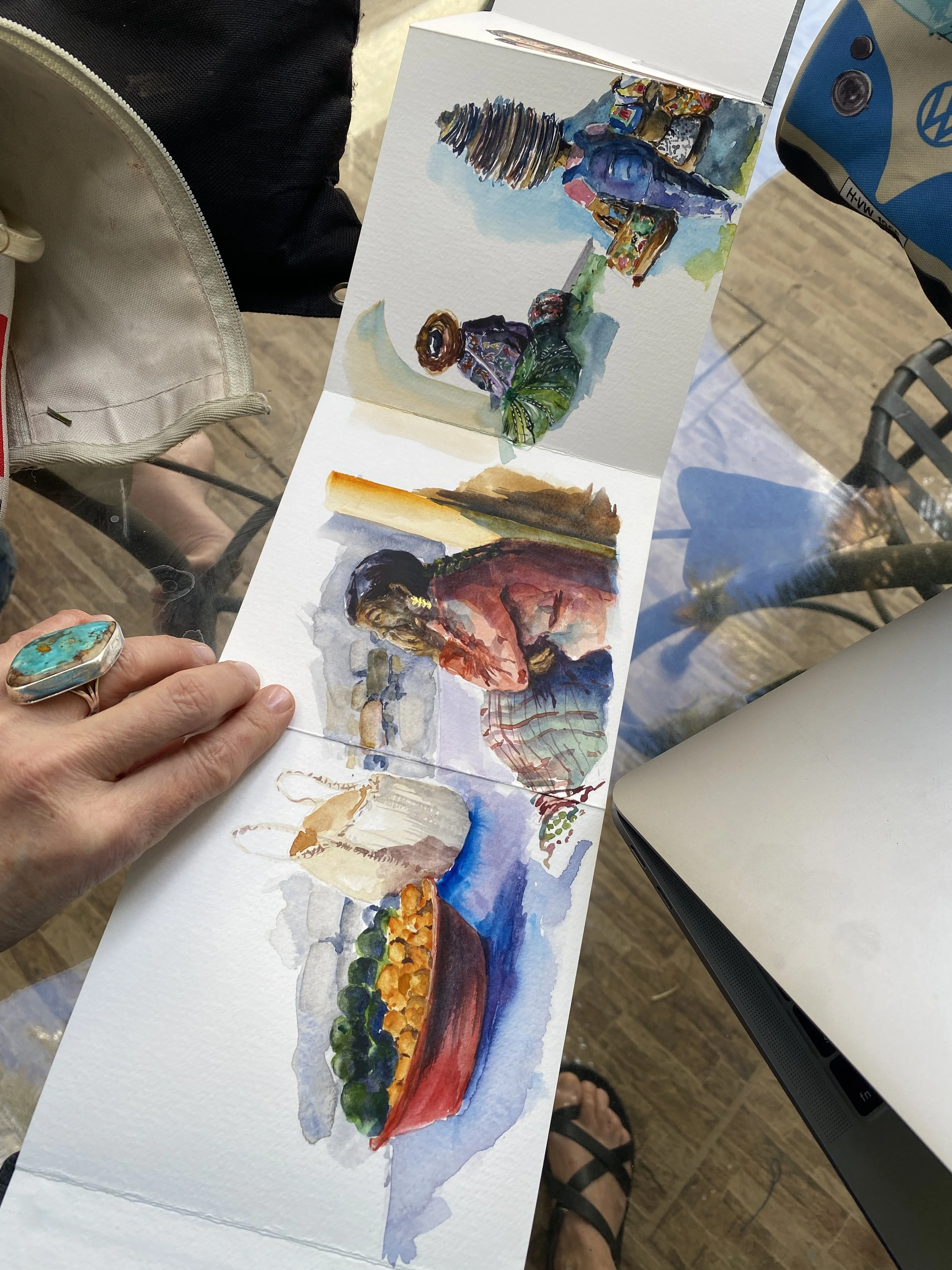 Basically it’s a diary of your experiences, but with a few drawings and other visual elements to enrich it. A travel journal is more than just a diary though, it’s a record of the in-the-moment impressions which occur so vividly when we travel. Think you can’t draw or paint? This is a lie that was told to you, probably while in school at some point. ALL of us are born creative beings but the world seems keen to tell us otherwise. In my workshops we breakdown these barriers to our in-born creativity. With a number of exercises you too can learn to make one of a kind travelogues of the world as you meet it. Whether you are traveling abroad, or simply noticing the beauty in your own back yard.m description